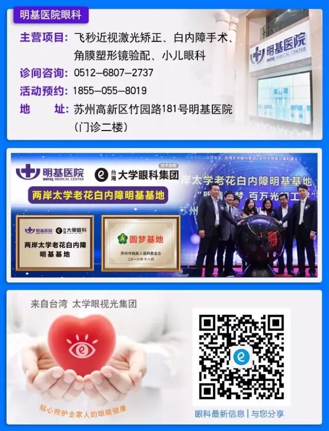 “看见”是一种幸福,而幸福需要好好地珍惜与守护。明基眼科希望在未来的几十年里甚至更长的时间里更好地造福苏州百姓。苏州明基医院眼科是明基医院的重点特色科室,旨在为苏州乃至长三角地区的广大群众带来更加安全、舒适、贴心的高品质医疗服务,让更多患者能够更舒适、更健康地看见美好未来。